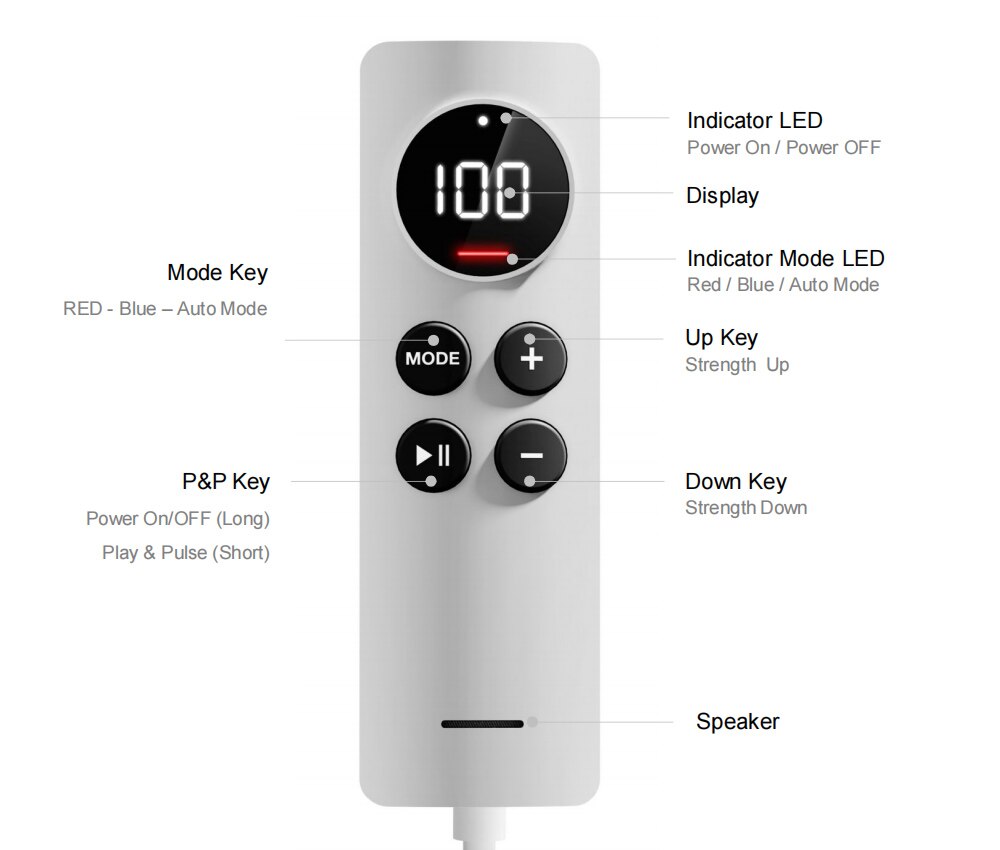 Everything at your finger tips. Control the color and the strength level of NIR on red mode.